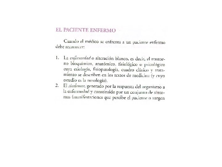 DEFINICIONES • SÍNTOMAS. Manifestación subjetiva de enfermedad (percibida exclusivamente por el paciente y que el médico puede descubrir sólo por el interrogatorio). P. ej. : - Dolor. - Disnea. - Palpitaciones…