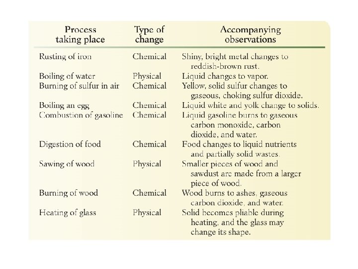 Changes • Physical Changes - can be carried out without changing the composition of a substances. • Chemical Changes – are changes that change the composition of a substance.