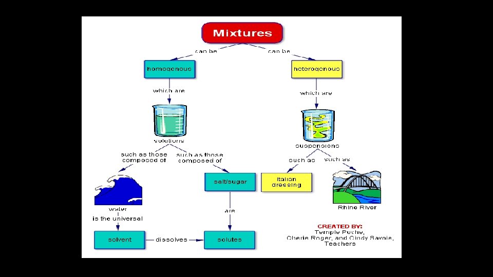 Classifying Mixtures • Heterogeneous Mixture • • composition of mixture is not uniform throughout oil and water 2 or more phases suspensions • Phase: any part or a mixture with uniform make up and properties • Homogeneous Mixture • composition of mixture is uniform throughout • consists of only 1 phase • solutions