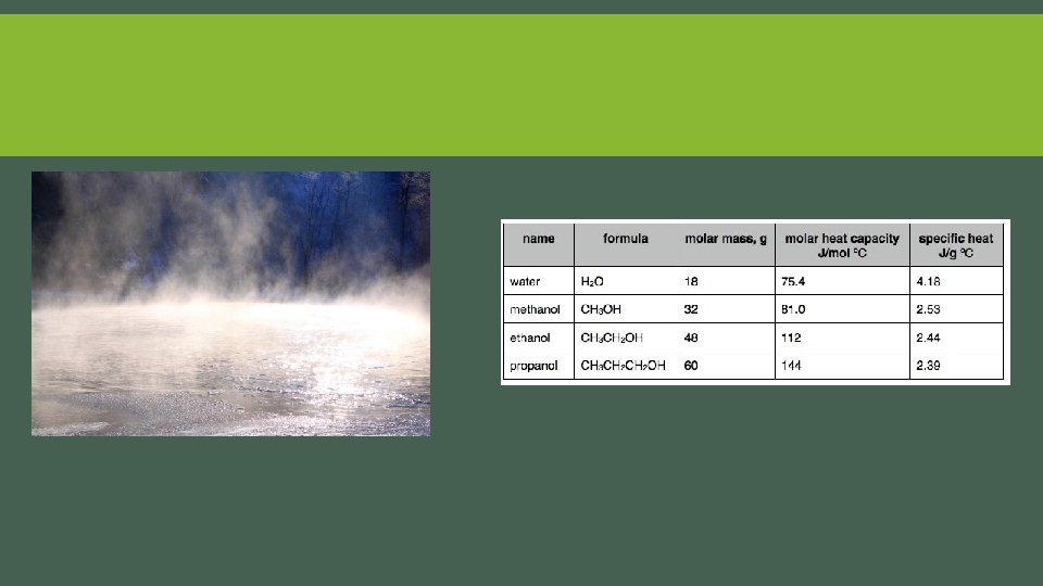 Properties of Water High Specific Heat - heat required to raise the temperature by 1 degree The higher the specific heat, the longer it takes to heat up a substance Higher S. H = more energy to heat up