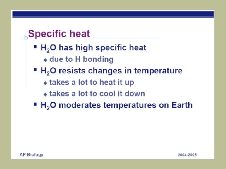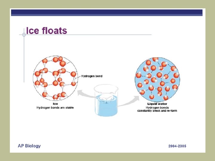 Why is “ice floats” important? ? § if ice sank…. . o eventually all ponds, lakes, and even ocean would freeze solid o during summer, only upper few inches would thaw § surface insulates water below o allowing life to survive the winter