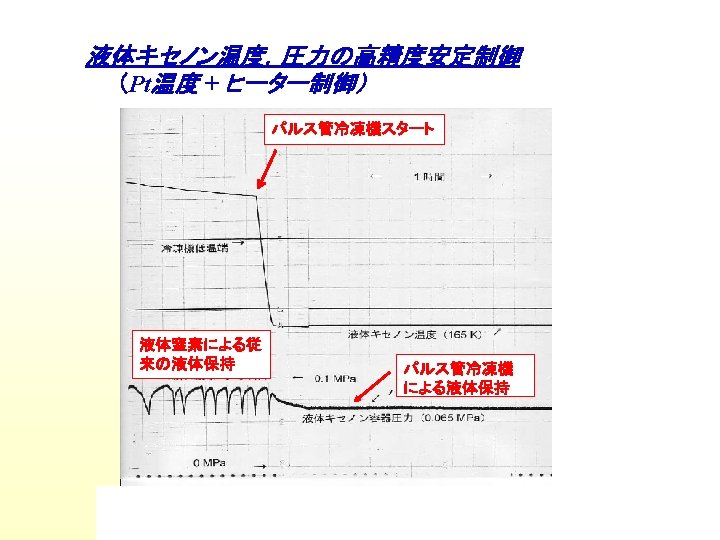 First xenon liquefaction by a pulse tube cryocooler ● 14 W@165 K pulse tube cryocooler For xenon property research ● Density, Boiling Heat transfer ● Refractive index at 174 nm VUV light