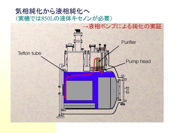 Xe flow scheme for MEG system 1000 L低温容器 静かな冷却 液相循環純化