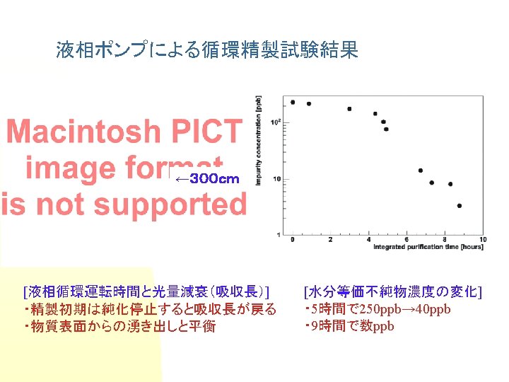 MEG LXe Detector -800 liter liquid xenon with 1000 PMTs -Impurity level of H 2 O to ~10 ppb