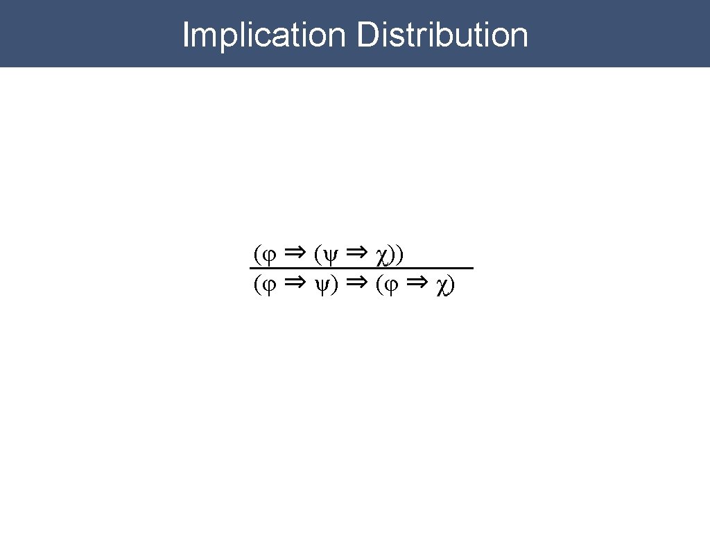 Rule Application Premises: (p ⇒q) ⇒ q(⇒r) Rule of Inference: φ⇒ψ φ ψ Conclusion: (q ⇒r) (p ⇒ q) ⇒ (q ⇒ r) (p ⇒ q) (q ⇒ r)