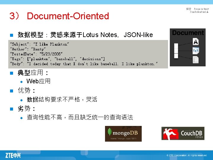 秘密 Proprietary Confidential▲ No. SQL四大家族 Key-Value Column Document Graph Dynamo Big. Table Mongo. DB Neo 4 j Riak HBase Couch. DB Hyper. Graph. D B Memcached Cassandra …… …… Redis Hyper. Table Tokyo Cabinet/Ty rant …… Voldemort ……