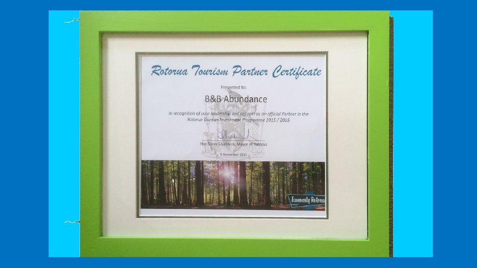 For several years the world came to my breakfast table. Until finally I decided it was now or never to go and see more of the world myself so here I am! I am passionate about Rotorua as I feel so at home here. In January I set up Abundance B&B at 33 Elizabeth Street, Victoria. Since then I have had over 120 international guests with my occupancy rate being 83% so far.