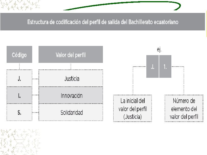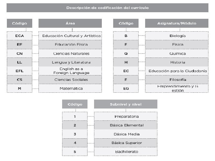 Estructura Curricular hasta Junio 2016 üPerfil de salida de BGU üPerfil de salida de EGB üPerfil de salida del área üObjetivos educativos del área üEjes de aprendizaje üMacrodestrezas üDestrezas con criterio de desempeño üObjetivos educativos del año üBloques Curriculares üEje curricular integrador üPrecisiones para la enseñanza y el aprendizaje üIndicadores esenciales de evaluación