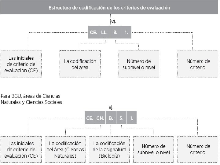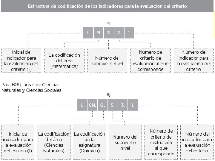 CURRÍCULO: Subniveles: Elemental, Media, Superior, Bachillerato 4. Matriz de criterios de evaluación de la asignatura y el nivel correspondiente. (tiene los siguientes elementos) Criterio de evaluación, Orientaciones metodológicas para la evaluación del criterio. Objetivos generales del área que se evalúan, Destrezas con criterios de desempeño a evaluar, Elementos del perfil de salida a los que se contribuye, Indicadores para la evaluación del criterio.