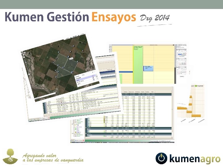 Propuesta General La propuesta consiste en formar parte de un pool de desarrollo integrado por otras empresas de similar envergadura y propósito, con el objeto de desarrollar una plataforma informática capaz de sistematizar el proceso de generación y procesamiento de la información de ensayos a campo, casos de uso de productos y seguimiento de reclamos. La ventaja de integrar el desarrollo entre varias empresas es potenciar el análisis de sus prestaciones, financiar su desarrollo en conjunto y asegurar su crecimiento en el tiempo. Lo único que se comparte es la plataforma y no sus datos ni los esquemas de parametrización y protocolización, los cuales son privados para cada empresa y por ende de trato confidencial. Kumenagro brinda el soporte funcional y de requerimientos con Niveles de Servicios estándar de mercado,