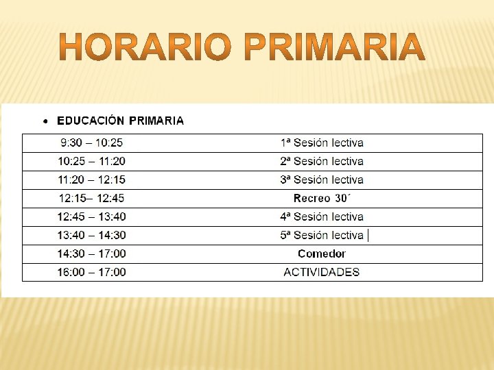 HORARIOS GENERAL: De 9: 30 a 14: 30. Comedor de 14: 30 a 17: 00. Act. extraescolares de 16: 00 a 17: 00. (opcionales)
