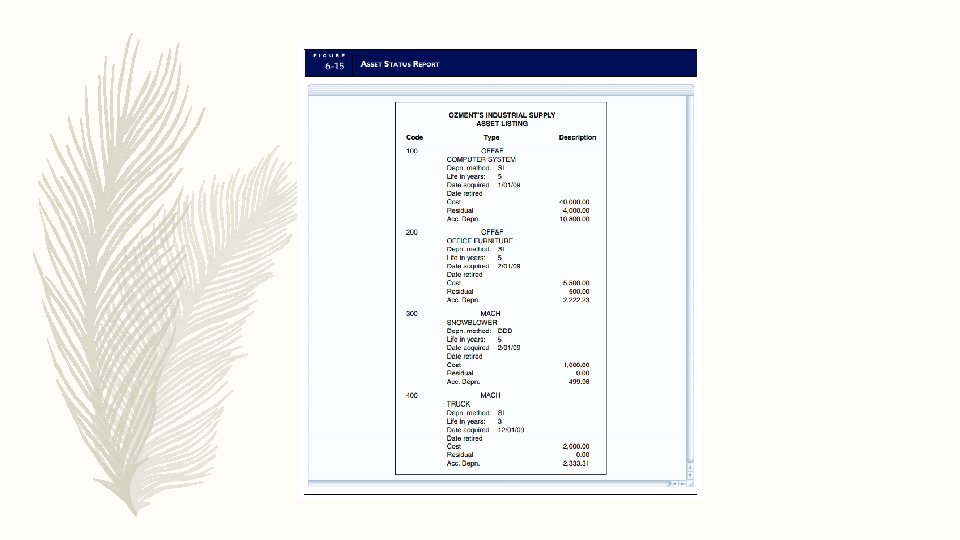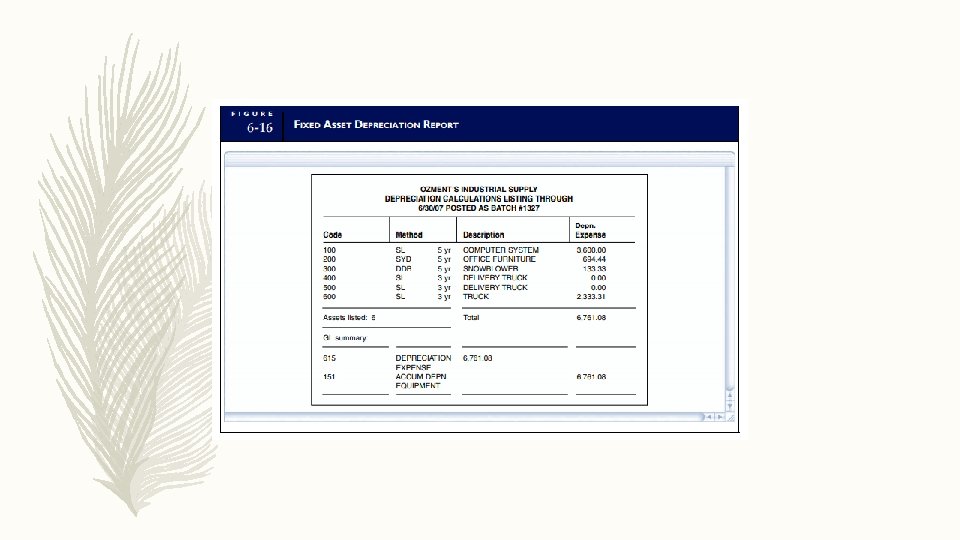 Pemeliharaan aset § Melibatkan penyesuaian saldo akun anak perusahaan FAS saat aset terdepresiasi. § Perlu dilakukan perhitungan depresiasi yang merupakan transaksi internal yang didasarkan pada sistem FAS pada jadwal depresiasi. § Jika terdapat perbaikan fisik juga harus dicatat untuk meningkatkan saldo akun anak perusahaan dan jadwal penyusutan