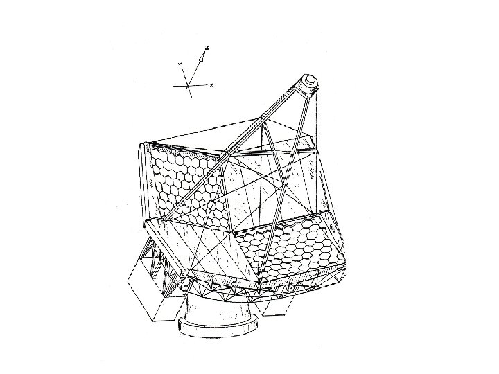 VERITAS The array will consist of seven 34 -foot-aperture optical telescopes placed at the corners and center of a hexagon with 279 -foot-long sides. Each large reflector will have a sophisticated camera at its focus. Threshold Energy 50 -70 Ge. V Angular resolution 0. 05 deg Energy resolution 15%