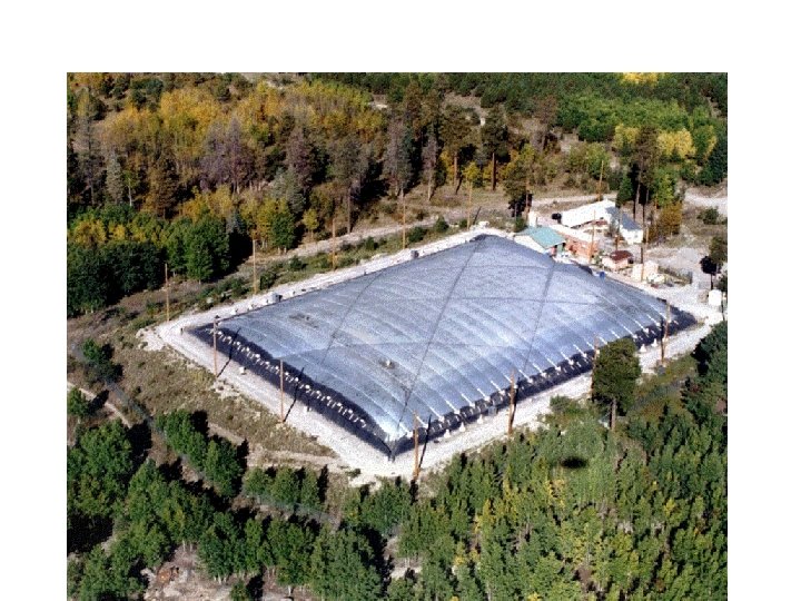 MILAGRO L’apparato Milagro consiste di una grande vasca (delle dimensioni di un campo di calcio) riempita d’acqua, e sigillata a tenuta di luce. Nella piscina sono installati 723 PMT. Il principio di funzionamento è quello di rivelare i fotoni Cerenkov emessi dalle particelle veloci che attraversano la piscina.