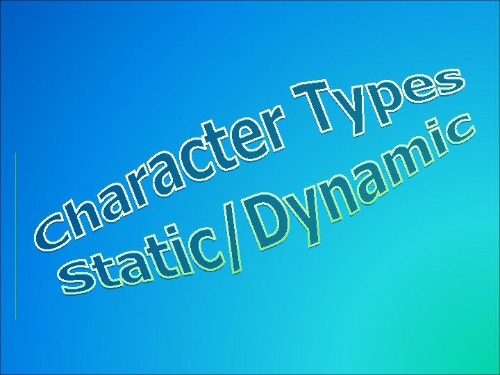 Static/Dynamic • The key word when dealing with the difference between static and dynamic characters is "change. “ • These would include a major change in their personality, or a change in their outlook on life. • Another change that a character may undergo is a change in values, or it could be an overall change in the nature of the character.