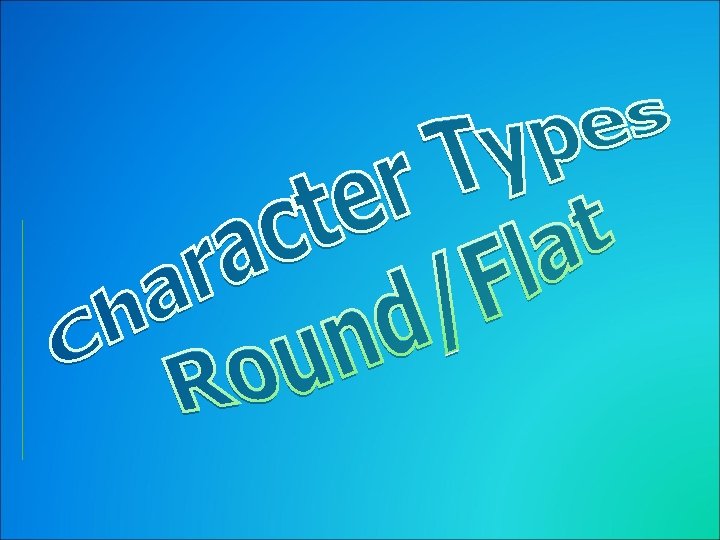 Round • Characters that are described in depth, with many details, are well-rounded characters - they are called round characters. • If you're reading a story and you feel like you know a character extremely well, then most likely the character is round. • The main character in a story is almost always round.