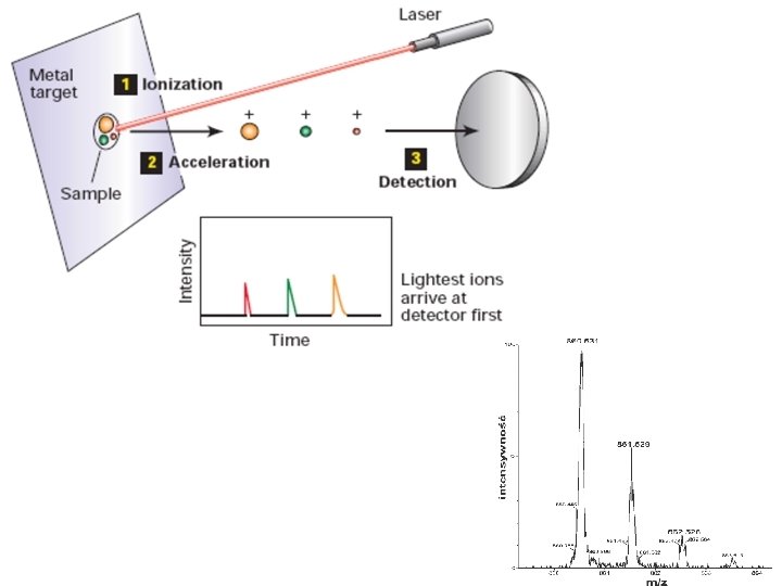 MALDI-To. F Timed ion selector Laser Sample plate Accelerating field + + Reflector + + + Flight tube Detectors