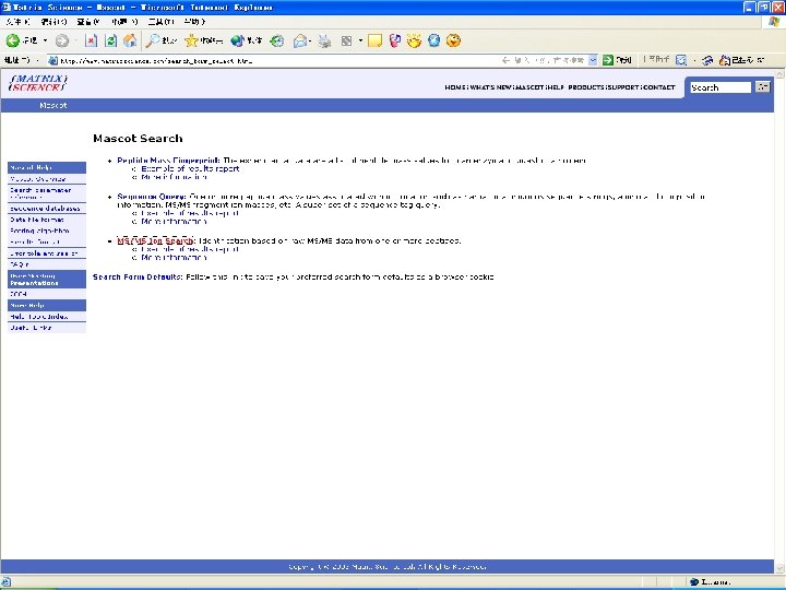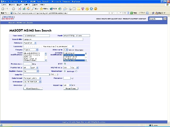 Database search by MASCOT