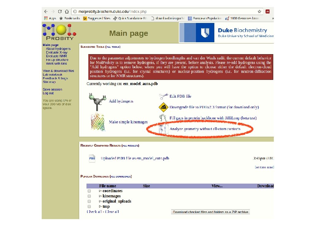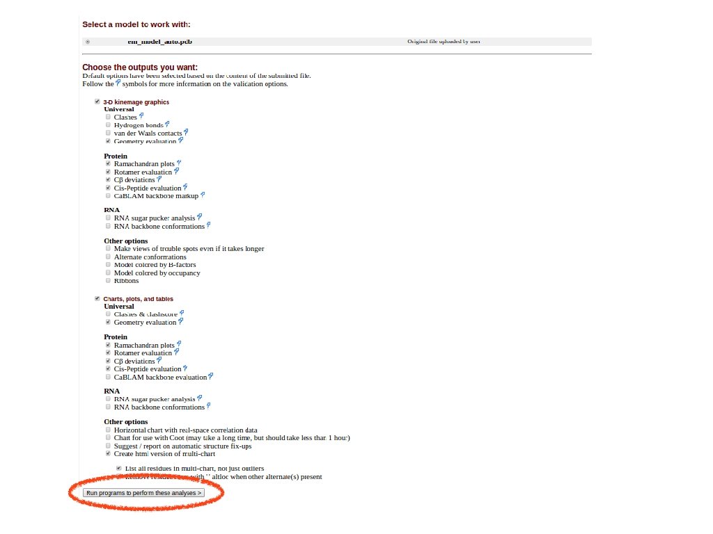 You would want to assess the model! • If you submit the template structure, you would still obtain statistics but this tells you nothing directly about your model! http: //molprobity. biochem. duke. edu