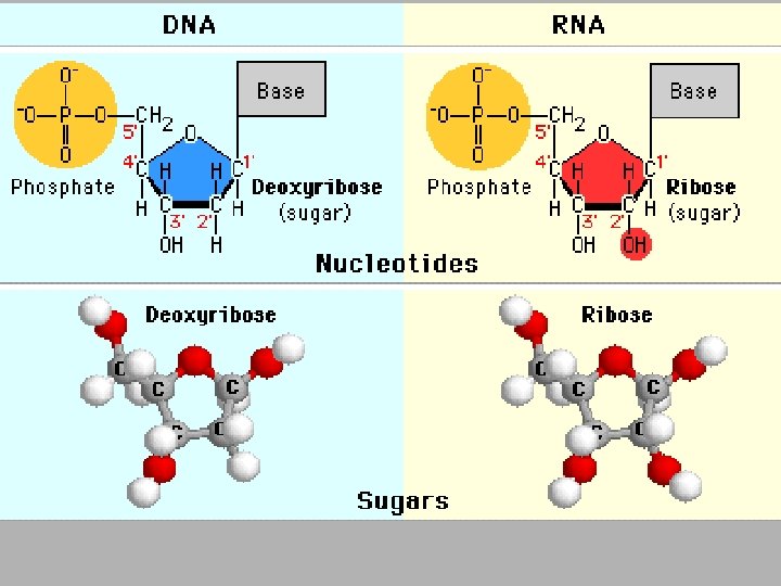 DNA vs. RNA (differences) • DNA – Sugar (Deoxyribose) – Phosphate Group – Nitogenous Bases –A – T=Thymine –G –C • _Double Stranded • Longer • RNA – Sugar (Ribose) – Phosphate group – Nitrogenous Bases • A • U=Uracil(Not “T”) • G • C • Single Stranded • Shorter