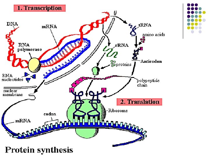 2 Stages to Protein Synthesis l Transcription l l The process of turning the DNA code into m. RNA Translation l When t. RNA brings Amino Acids back to the ribosome to assemble proteins
