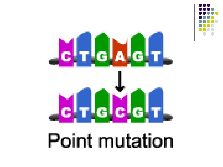 Mutations l Point mutation l l l When one DNA base is replaced Affects only one Amino Acid May or may not change the amino acid l l If it does, it changes the protein If it doesn’t, it is ok!!