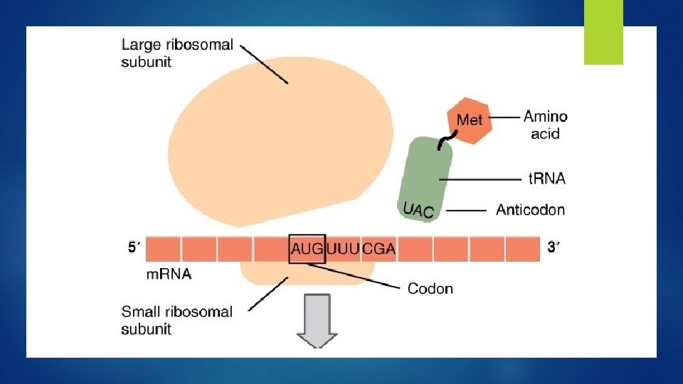 Figure 4. Translation from RNA to Protein. During translation, the m. RNA tran