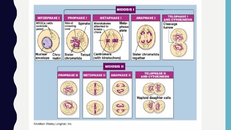 v. Meiosis goes through the stages of mitosis twice without going through interphase S (chromosome replication) in between the two processes.