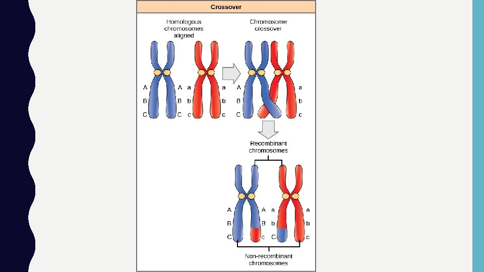 II. Prophase I v. Crossing over occurs at this time with pieces of chromosomes exchanging places with other pieces of chromosomes. v. In mitosis, only the pairs of sister chromatids are together