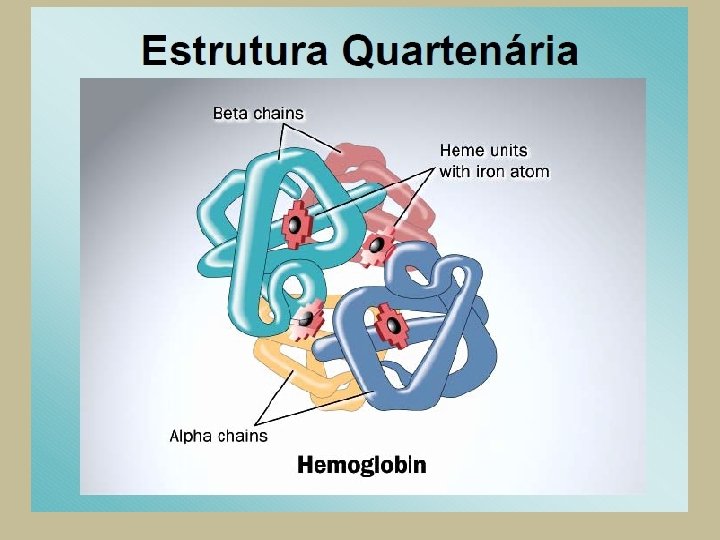 Funções das Proteínas • Função Hormonal – Muitos hormônios são, na verdade, proteínas especializadas na função de estimular ou inibir a atividade de determinados órgãos, sendo portando reguladores do metabolismo, ex. : Insulina • Transporte – Muitas proteínas são transportadoras de nutrientes e metabólitos entre fluidos e tecidos; de uma forma geral, transportam ativamente substâncias, ex. : hemoglobina.