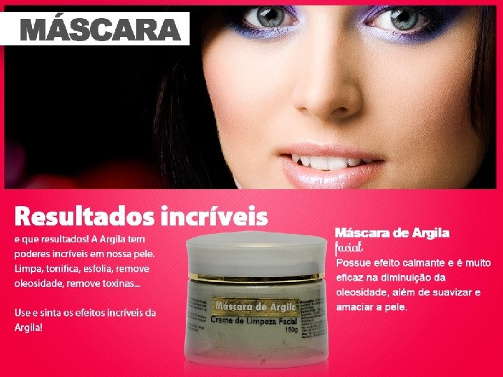 PASSOS 3º Passo: Máscara facial de Argila - Aplicar MÁSCARA FACIAL DE ARGILA(cód ) espalhando sobre o rosto, em seguida coloca o papel seda branco, deixando secar naturalmente, retire posteriormente o papel e lave com bastante água ou retire com o algodão úmido, sem esfregar a pele 4º Passo: Loção Tonica - Aplicar LOÇÃO TÔNICA CALENDULA COM PEPINO (cod ) em todo o rosto batendo levemente