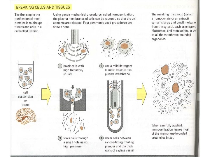 Protocol: Isolation of proteins § transfer of a tissue sample into a tube § desintegration of the tissue by a lysis buffer containing SDS (sodium dodecylsultate) § separation of the lysate containing proteins from tissue fragments by centrifugation Determination of protein concentration § by the Bradford method § using BSA (bovine serum albumine) as a standard for calibration curve construction