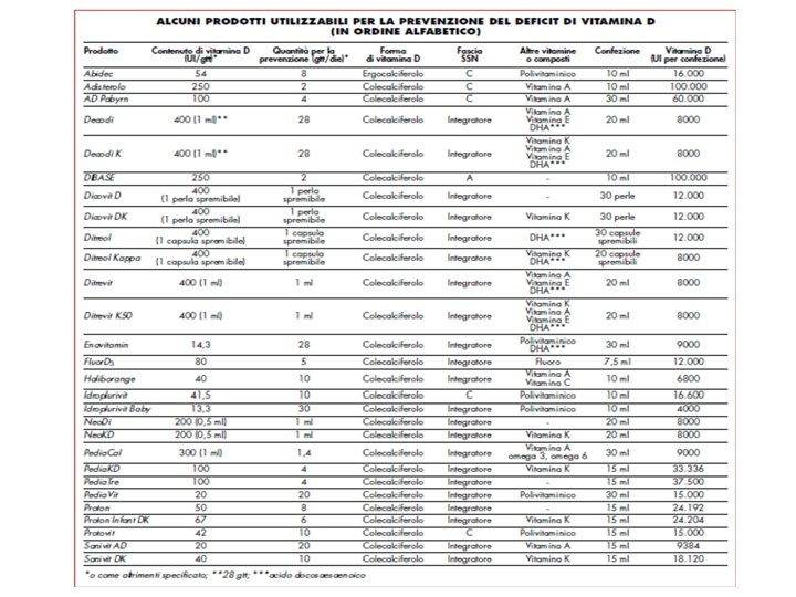 VITAMINA D CONTENUTO DI VITAMINA D NEI LATTI FORMULATI: 400 - 560 UI/l nelle formule di partenza 400 - 600 UI/l nelle formule di proseguimento 440 - 840 UI/l nei latti di crescita.