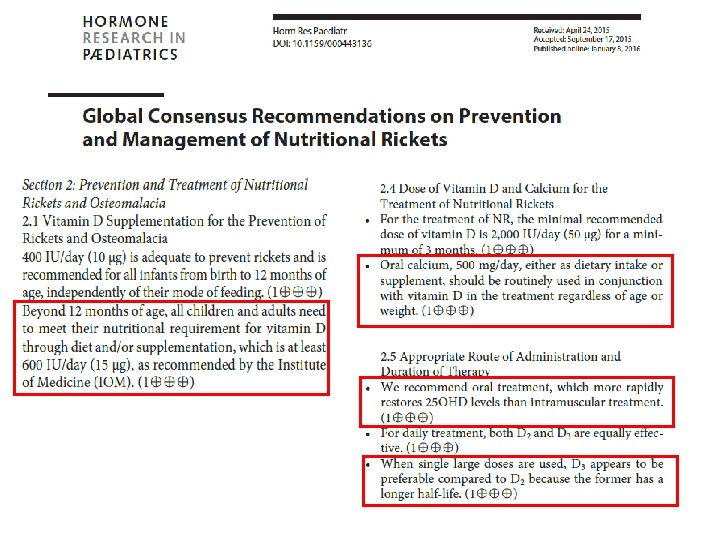 Markers diagnostici 3 FASI ALTERATO PATHWAY DELLA VIT D 1. IPOCALCEMICA NORMOFOSFATEMICA v Carenza nutrizionale di Vit D 2. NORMOCALCEMICA IPOFOSFATEMICA ( PTH) 3. IPOCALCEMICA IPOFOSFATEMICA M. Misra et al Pediatrics 2008; 122; 398 -417