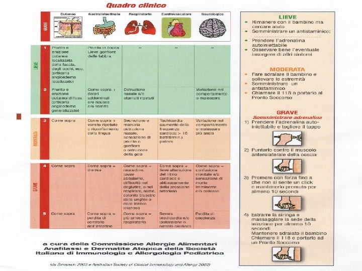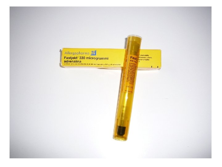 Anafilassi: cosa fare? Lieve ü Rimanere con il bambino ü Cercare aiuto ü Prendere l’adrenalina ü Osservare la comparsa di altri sintomi ü fare sdraiare il bambino Moderata ü chiamare 118 ü somministrare antiistaminico Grave ü somministrare adrenalina ü dare O 2 ü come sopra
