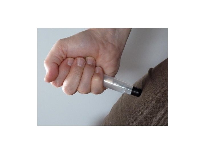 • Puntare il dispositivo contro il muscolo antero-laterale della coscia dal lato nero • Non toccare mai il tappo nero con le dita (fuoriesce l’ago)