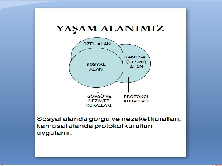 Protokol ve sosyal davranış kurallarının temeli Saygı ve nezakettir. Kamusal ve sosyal yaşamda; Konuklara Üstlere Hanımlara Saygı ve nezaket esastır.