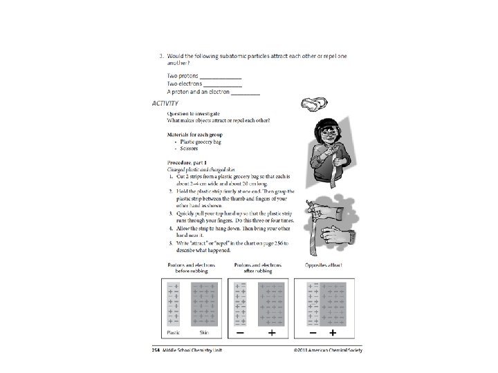 • What are three different tiny particles that make up an atom? • Protons, neutrons, and electrons.
