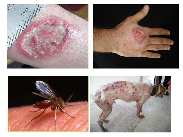 LEISHMANIOSE VISCERAL (Calazar) v v Agente etiológico: Leishmania donovani Vetor: v v Complicações: v v fígado, baço e intestino. Sintomas: v v hepatoesplenomegalia. Órgãos afetados: v v Lutzomyia (flebotomínios mosquito palha ou birigui). febre e enfraquecimento. Profilaxia: v são as mesmas de L. brasiliensis.