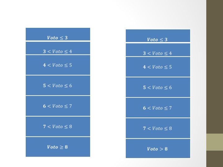 Quali dati? < 3 3 > 4 4 > 5 5 5 > 6 6 6 > 7 7 7 > 8 8 > 8