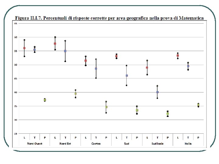 I DATI RESTITUITI DA INVALSI E MODALITÀ DI LETTURA Per ciascuna classe un file in Excel con § Risultato complessivo nella prova (medie classe, scuola, regionale, macro-area, nazionale) § Risultati in ciascun item: (medie classe, scuola, nazionale) § Dati disaggregati per nazionalità, sesso e regolarità § Percentuali diverse opzioni di risposta GRAFICI § Posizionamento di classi e scuola rispetto a regione, macro-area e Italia. § Posizionamento scuola item per item rispetto a Italia § Variabilità tra e dentro le classi Lettura analitica Lettura sintetica ‘di profondità’ in chiave comparativa