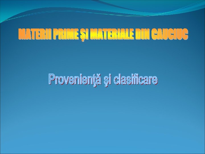 Provenienţă şi clasificare În prezent, cauciucul se obţine prin separarea sa din latex, folosind acid acetic (oţet concentrat); după separare este trecut printre doi cilindri şi tras în foi. Cauciucul brut astfel obţinut este un material plastic; pentru a-l transforma într-un material elastic se supune procesului de vulcanizare, care constă în încălzirea la temp. de 130 -145°C a unui amestec de cauciuc cu cantităţi mici de sulf; procesul este ireversibil.