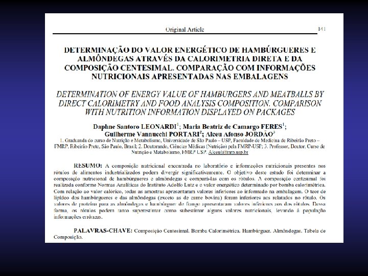 O mais importante é Sabermos se o que está descrito no rótulo é realmente aquilo que o alimento contém. Se os dados das tabelas de composição de alimentos ou programas nutricionais, são fidedignos, qual o grau de erro?