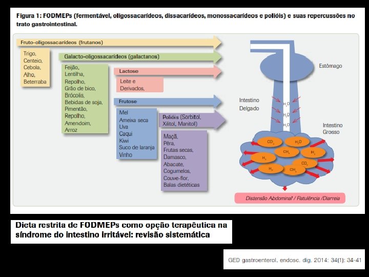 FODMAP´S • Os alimentos fermentáveis referidos são os carboidratos não digeridos pelo trato digestivo humano. • A formação de gases pela microbiota intestinal acabam por desencadear os referidos sintomas.