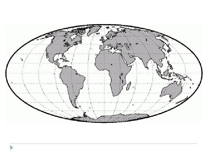 La proyección de Mollweide El meridiano central es recto. Los meridianos a 90° son arcos circulares. Los paralelos son rectos pero desigualmente espaciados.