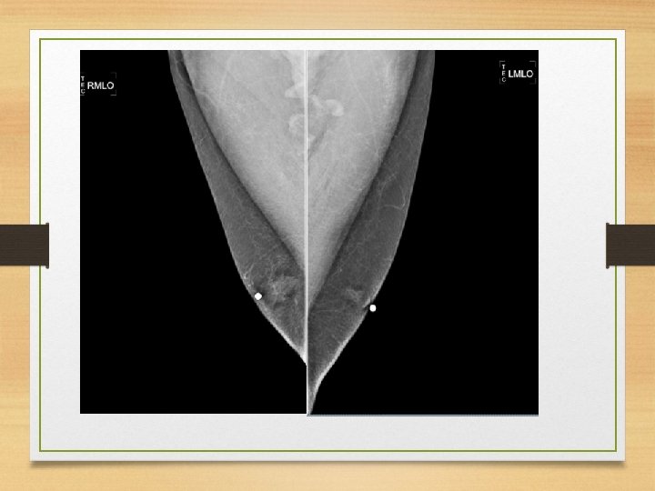 Magnificación • Agrandar áreas específicas de interés • Lesiones pequeñas • Microcalcificaiones. • Tubo de rayos x con un foco de 0. 1 mm • Agrandamientos de 1. 5 a 2 veces • Se puede utilizar en la mayoría de las proyecciones mamográficas.