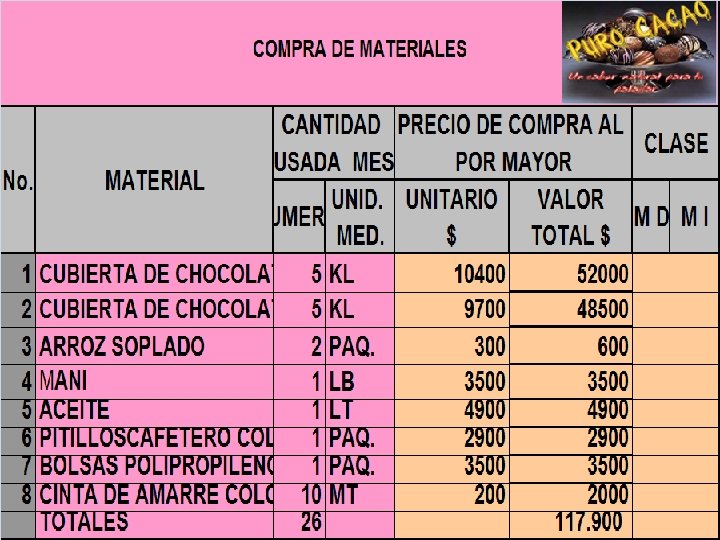 PROYECTO DE GRADO ESTRUCTURA DE COSTOS EMPRESA PURO CACAO ASESOR JHON FREDY OCAMPO HERRERA MARIA ROCIO CHAVARRO GOMEZ LAURA VICTORIA CORDOBA CASAS COMPUEDU 2010
