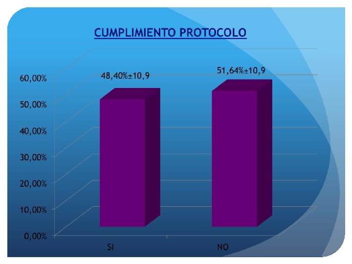 METODOLOGÍA LIMITACIONES DEL ESTUDIO: Debido a que es una intervención educativa, no sabemos si se diluye con el tiempo. Podríamos prolongar el estudio a 12 -18 meses. Pequeño tamaño de la muestra. Importantes pérdidas de pacientes durante el estudio por fallecimiento o por abandono voluntario del estudio. Destaca una menor colaboración en el “grupo Intervención”, confirmando muchos de ellos el no cumplimiento de la dieta.