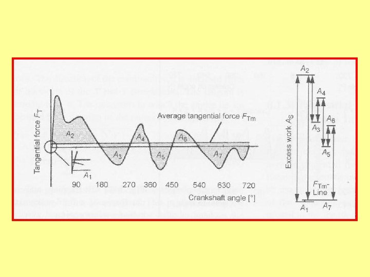 FUERZAS Y MOMENTOS EN MOTORES MONOCILÍNDRICOS • Podemos conocer para cada ángulo del cigüeñal el valor de las fuerzas que actúan sobre los diferentes puntos del mecanismo. • En particular nos interesa la fuerza aplicada sobre la biela en el punto A en el gorrón de la manivela, cuya componente tangencial genera el torque.