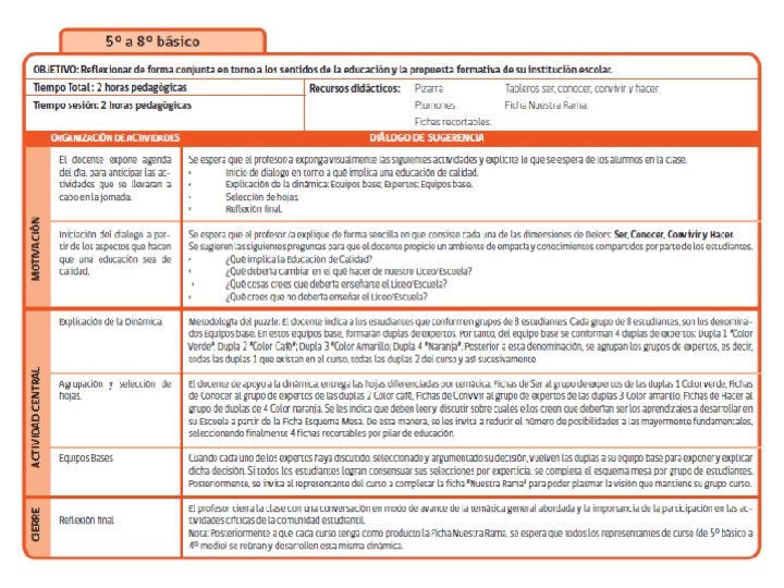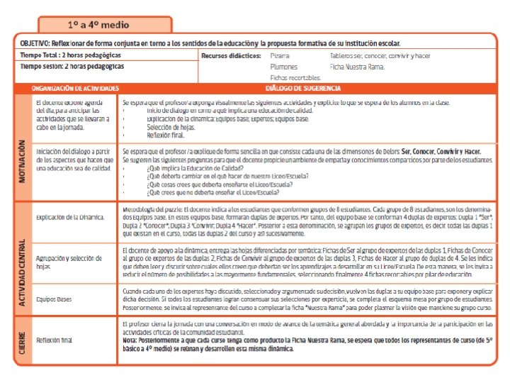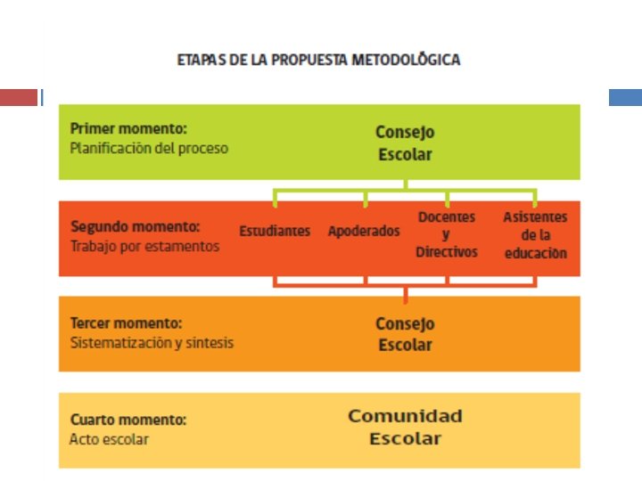 Objetivo General • Promover un proceso participativo de Reflexión sobre los sentidos del Proyecto Educativo Institucional en las escuelas y liceos del país. Que contemple la participación, reflexión y análisis de los distintos actores de la comunidad educativa.